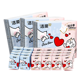 潔柔手帕紙對半撕分享式4層7片*60包可愛小貓咪印花迷你可濕水無香