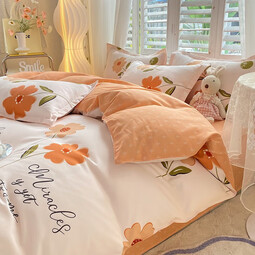 軟貝 磨毛四件套 透氣親膚印花卡通簡約田園套件被套床單床上用品套件 春曉 1.2m床單款三件套(被套150*200cm