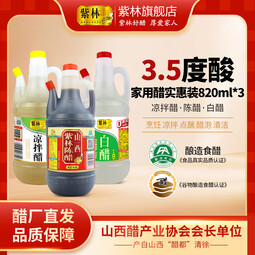 紫林陳醋白醋涼拌醋820ml*3山西特產醋純糧調味品組合塑料瓶涼拌餐飲 820ml*3瓶組合裝