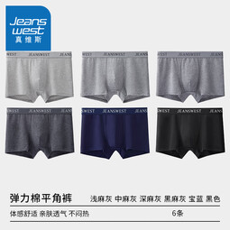 真維斯男士內褲7A抗菌男生長絨棉平角褲舒適透氣寬松款運動四角短褲頭褲 淺灰-中灰-深灰-黑麻灰-寶藍-黑 L 80斤以內
