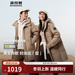 波司登(BOSIDENG)25新品90絨羽絨服男女情侶時尚休閑百搭加厚中長連帽外套 【店長推薦色】字母松茸卡|9X70 XS 165/88A 體重約120斤以內