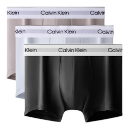 Calvin Klein內(nèi)衣【摩登引力帶】男士三條裝ck提花棉質(zhì)防夾臀平角內(nèi)褲男NB3963 PSW-太空黑/云水藍(lán)/星灰 3條 S