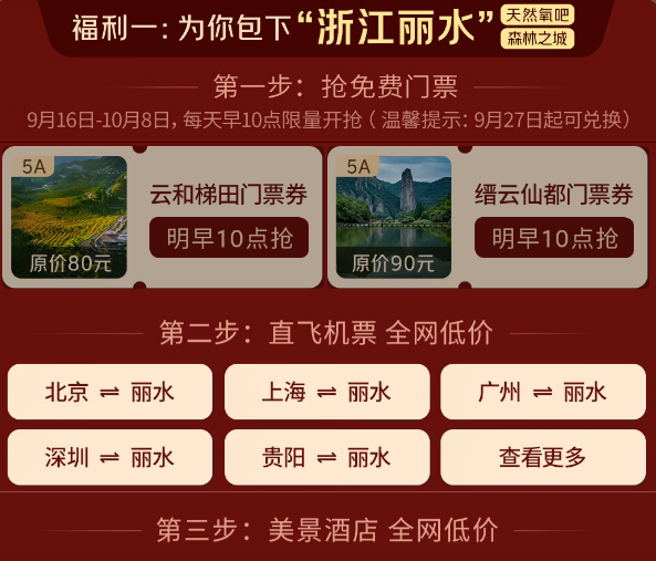 活動權(quán)益:免費游5A級景區(qū)|航空酒店大額券