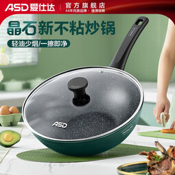 愛仕達(ASD) 不粘鍋炒鍋牛油果綠家用炒菜鍋加深平底煎炒鍋 電磁爐燃氣灶通用 煎炒鍋 28cm