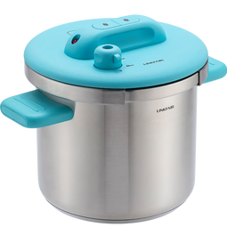 凌豐(LINKFAIR)家用高壓鍋燃氣壓力鍋304不銹鋼快煮防爆單手開合煤氣電磁爐通用 淺藍-送蒸籠鍋蓋四件套 22cm 7L