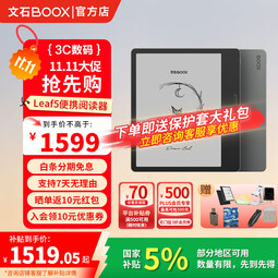 商品介紹:BOOX文石leaf5高速閱讀器是一款7英寸墨水屏電紙書,適合商務(wù)和辦公使用。配備森林綠色外殼,并附贈磁吸保護(hù)套。商品優(yōu)勢:1. 高速閱讀體驗:E-ink技術(shù),清晰不傷眼。2. 多功能應(yīng)用:支持PDF標(biāo)注、手寫筆記、Wi-Fi連接等功能。3. 精美設(shè)計:時尚大氣的外觀設(shè)計,有效保護(hù)設(shè)備免受劃傷和碰撞。購買建議:BOOX文石leaf5適合商務(wù)需求及日常閱讀,性能強大且實用多功能。現(xiàn)在還附送...