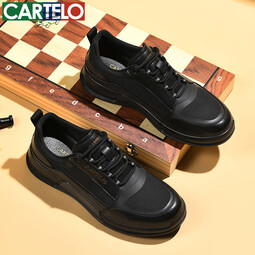 卡帝樂鱷魚男鞋秋冬季新款男士休閑皮鞋時尚運動休閑鞋百搭透氣旅游鞋子 黑色 5706 38