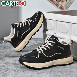 卡帝樂鱷魚男鞋秋冬新款運動鞋男旅游厚底休閑鞋輕便防滑耐磨戶外跑步鞋 黑杏 QH8313 39