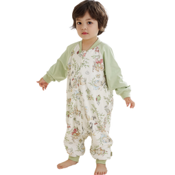 威爾貝魯(WELLBER)恒溫睡袋嬰幼兒1-3歲竹棉睡衣秋冬兒童寶寶防踢被子薄夾棉 森林M