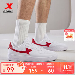 特步男鞋運動鞋空軍一號情侶板鞋百搭休閑鞋時尚耐磨防滑運動鞋潮板鞋 白紅【男款】 39