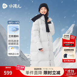 水孩兒(SOUHAIT)【極寒系列】童裝男童女童長款羽絨服冬季兒童三防厚外套 云峰白 110 -充絨量125g