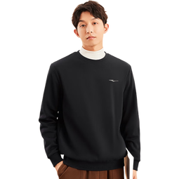 鴻星爾克舒暖絨|衛(wèi)衣男秋冬新款加厚保暖休閑長袖套頭衫運動服上衣男裝 正黑 M