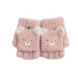 TSFUL手套女保暖秋冬季毛絨可愛寫字辦公半指翻蓋手套騎行開車防寒防風