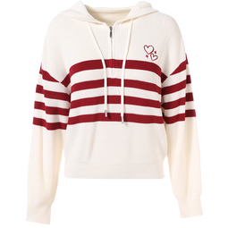 百圖betu女裝秋季新款曠野美拉德衫連帽條紋針織衫女2409T33 米白 XS