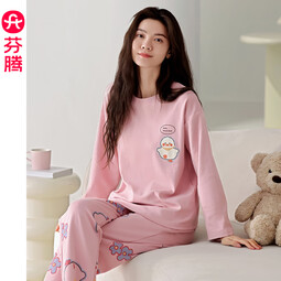 芬騰新款女士純棉春秋季長袖睡衣套裝少女可愛休閑大碼全棉家居服 FX25931705粉色 M 建議:80-105斤