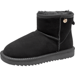 意爾康女靴雪地靴女士棉鞋厚底冬季加絨保暖東北抗寒短靴媽媽靴子 黑色 加絨 35