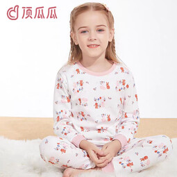 頂瓜瓜兒童秋衣秋褲套裝純棉男童棉毛衫保暖內衣女童全棉寶寶打底衣睡衣 白色小兔子 100 建議身高90-100cm