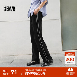 森馬(Semir)休閑褲女肌理雪尼爾撞色長褲顯腿長冬遮肉顯瘦寬松闊腿褲復古 黑色90001 XS