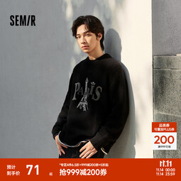 森馬(Semir)梅花系列毛衫男冬季繡花情侶針織衫復古寬松套頭毛衣內搭外穿 黑色調00399 XS