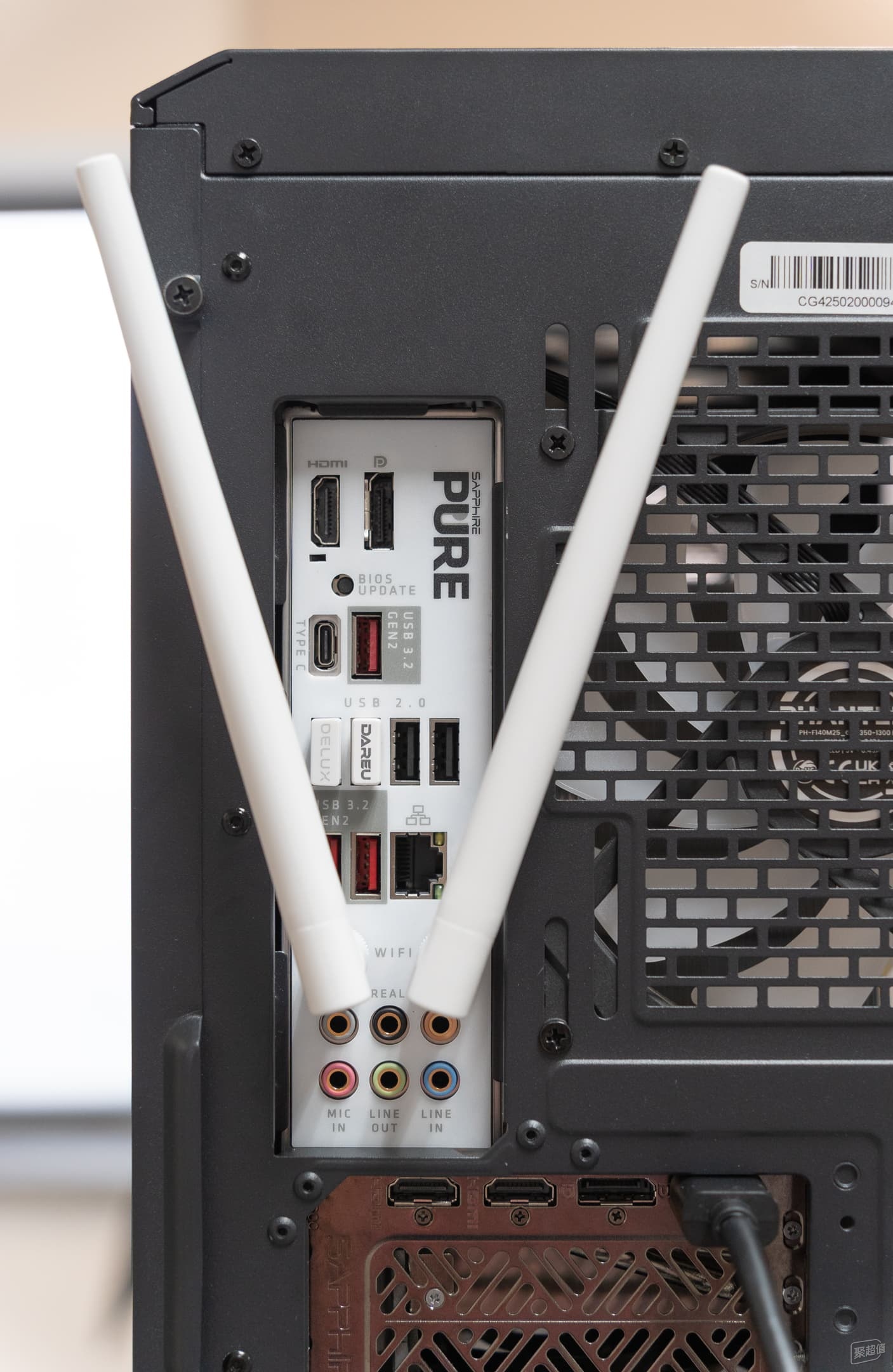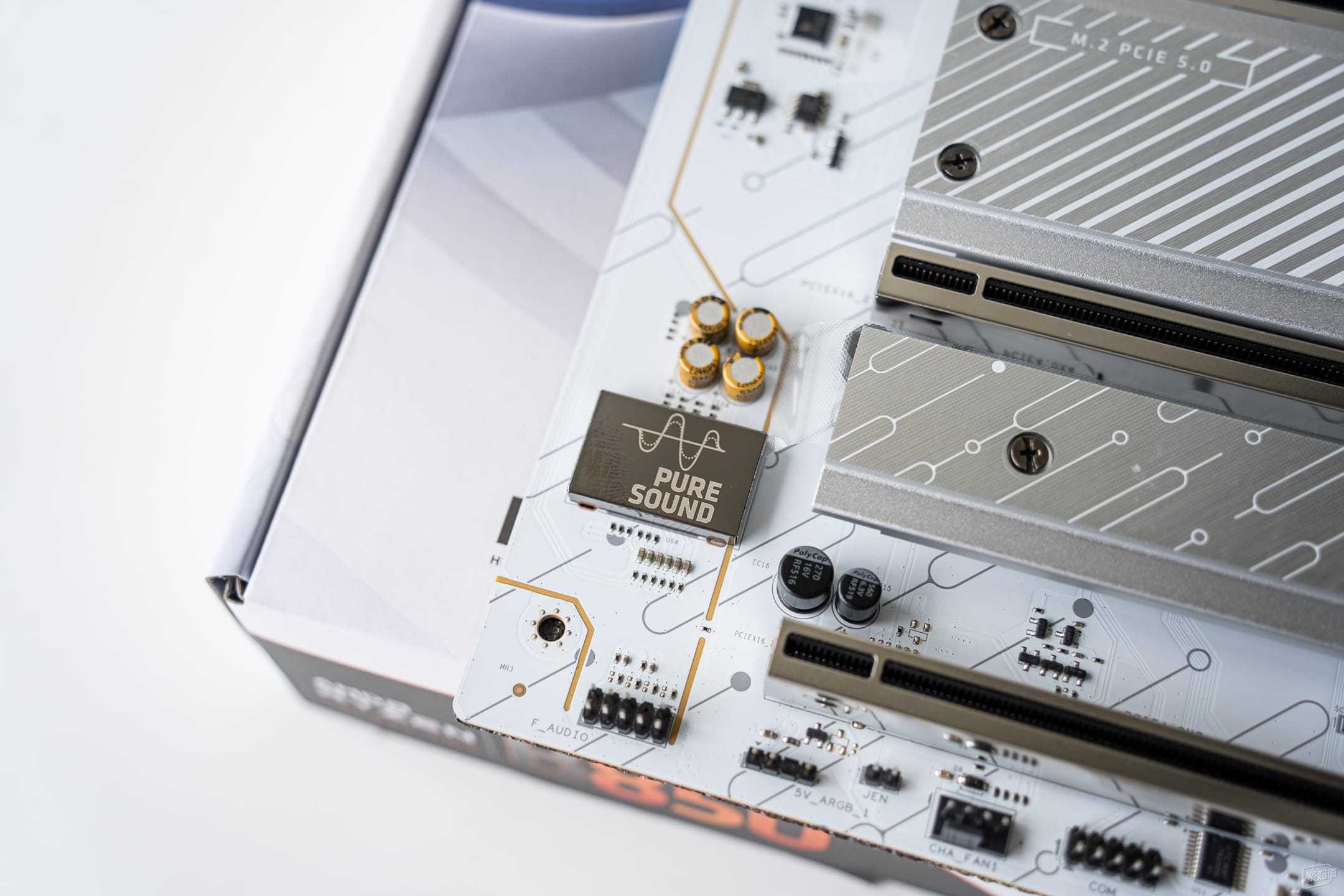 在音頻方面,不僅搭載了專業級的 Realtek ALC897 高保真解碼芯片,還搭配了專屬的 PURE SOUND 聲卡屏蔽罩,為用戶帶來更純凈、細膩的音質表現。網絡方面,2.5G 高速率網口也沒有缺席,可以提供更快的局域網傳輸速度。無線傳輸方面提供了 Wi-Fi 6 的無線天線,可以隨時隨地的連接無線網絡。