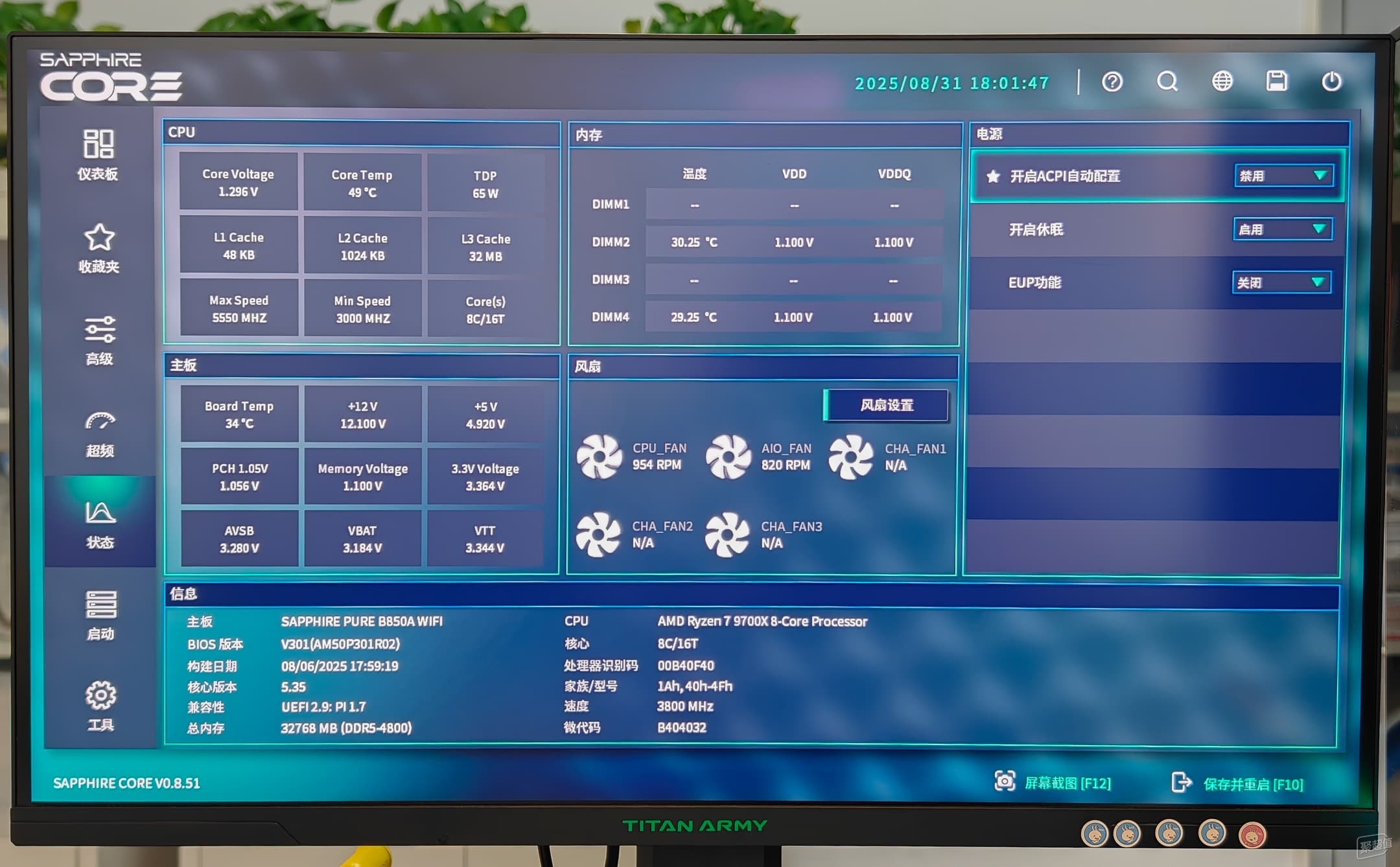 藍寶石極地 B850A WIFI 最近發布了新版 BIOS 版本。我也在第一時間下載更新。 新版最大改變就是 UI 界面的變化,首頁就可以直觀的看出功能區域的劃分。新增加了 “快速設置區域” 可以對主板的內存超頻等功能進行快速設置,同時也提供了默認的性能配置,新手用戶可以快速進行設置。