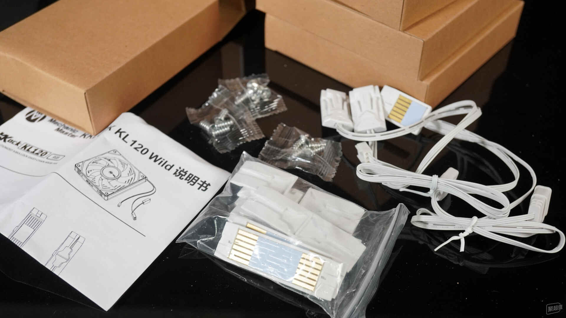 連接方式也很簡單,看好風(fēng)扇有金屬觸點(diǎn)的一邊,用帶金屬導(dǎo)電條的扣片連接上即可。風(fēng)扇上甚至設(shè)計(jì)了4檔的扣位,可以自由調(diào)整風(fēng)扇間距。