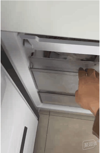▲冰箱下半位置,左側(cè)為冷凍區(qū),冷凍層最上側(cè)配備抽屜式存儲(chǔ),方便干貨類食物,蛋糕、甜品等冷凍存儲(chǔ)(我喜歡吃的榴蓮千層冷凍的好位置),配備兩個(gè)抽屜用于日常肉類,海鮮類存儲(chǔ)。