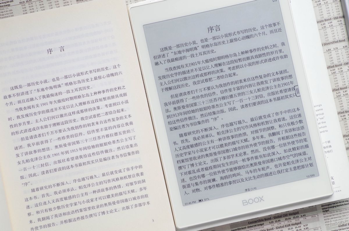 加上減屏的設計,少了導光層后,墨水能給人一種更“表面”的“紙感”,更真實和沉浸感的閱讀體驗。