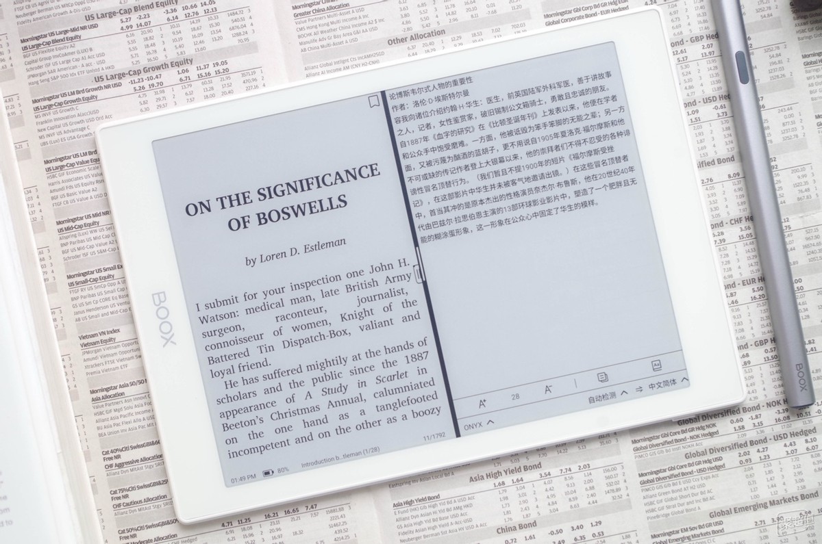 7.8英寸設備接近日常A5筆記本和普通開本出版紙書的尺寸,字體大小接近的時候每頁顯示的內容也接近,可以說是最接近紙書的選擇。