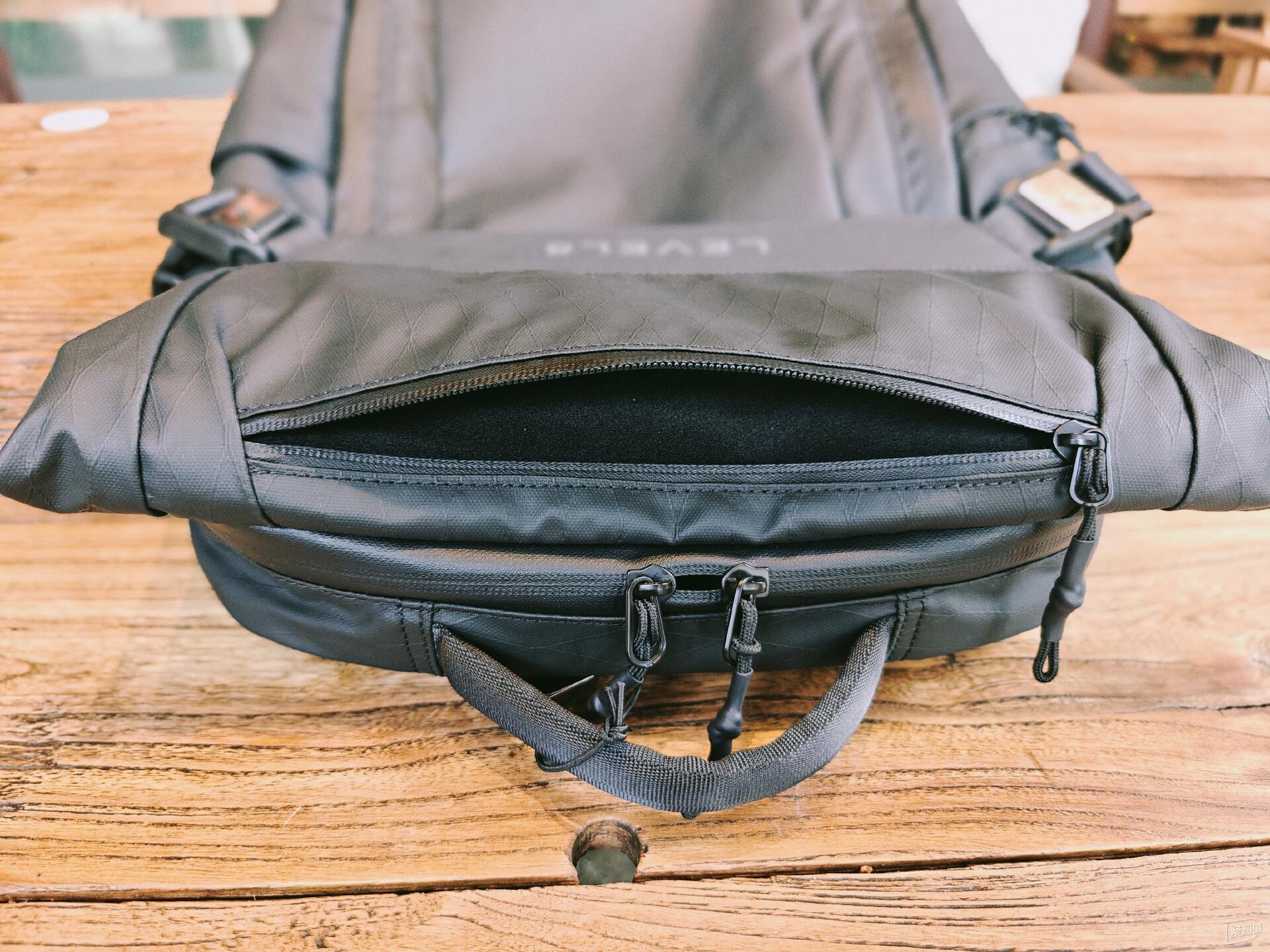 這款背包的存儲空間進行了非常細致的劃分,可以應對各種不同的存儲需求,比如頂部帶有一個小號的證件倉,可以快捷取放各種證件、手機等。