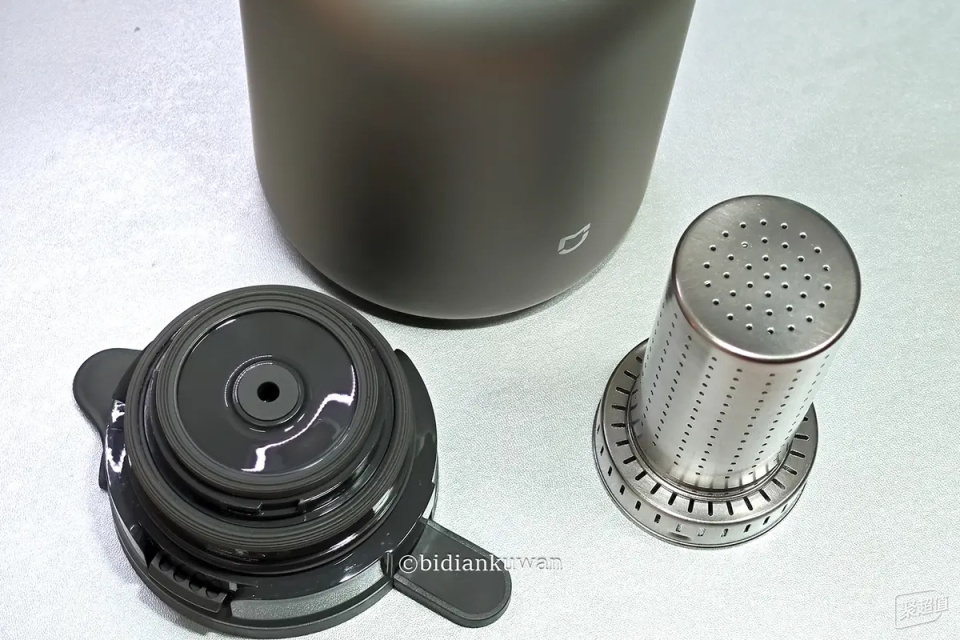想要添水,只需一捏一提就可開蓋。純鈦內膽光滑潔凈,茶倉與壺蓋的組裝也只需對準卡扣一擰,一秒拆裝。