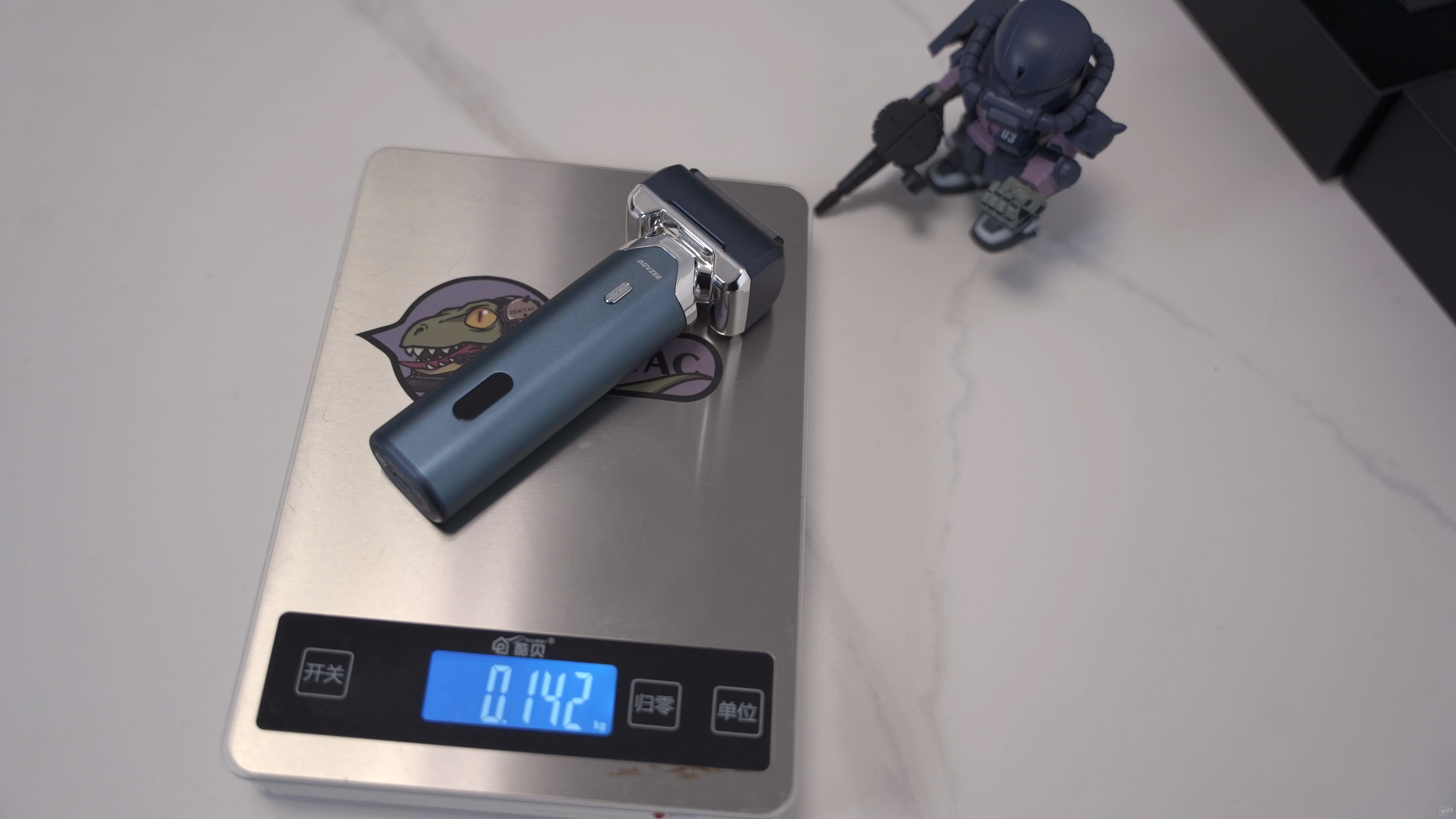 雖然是采用全金屬機身,但是剃須刀帶電池的重量實測僅為142g,還不到一個手機的重量,非常輕便。
