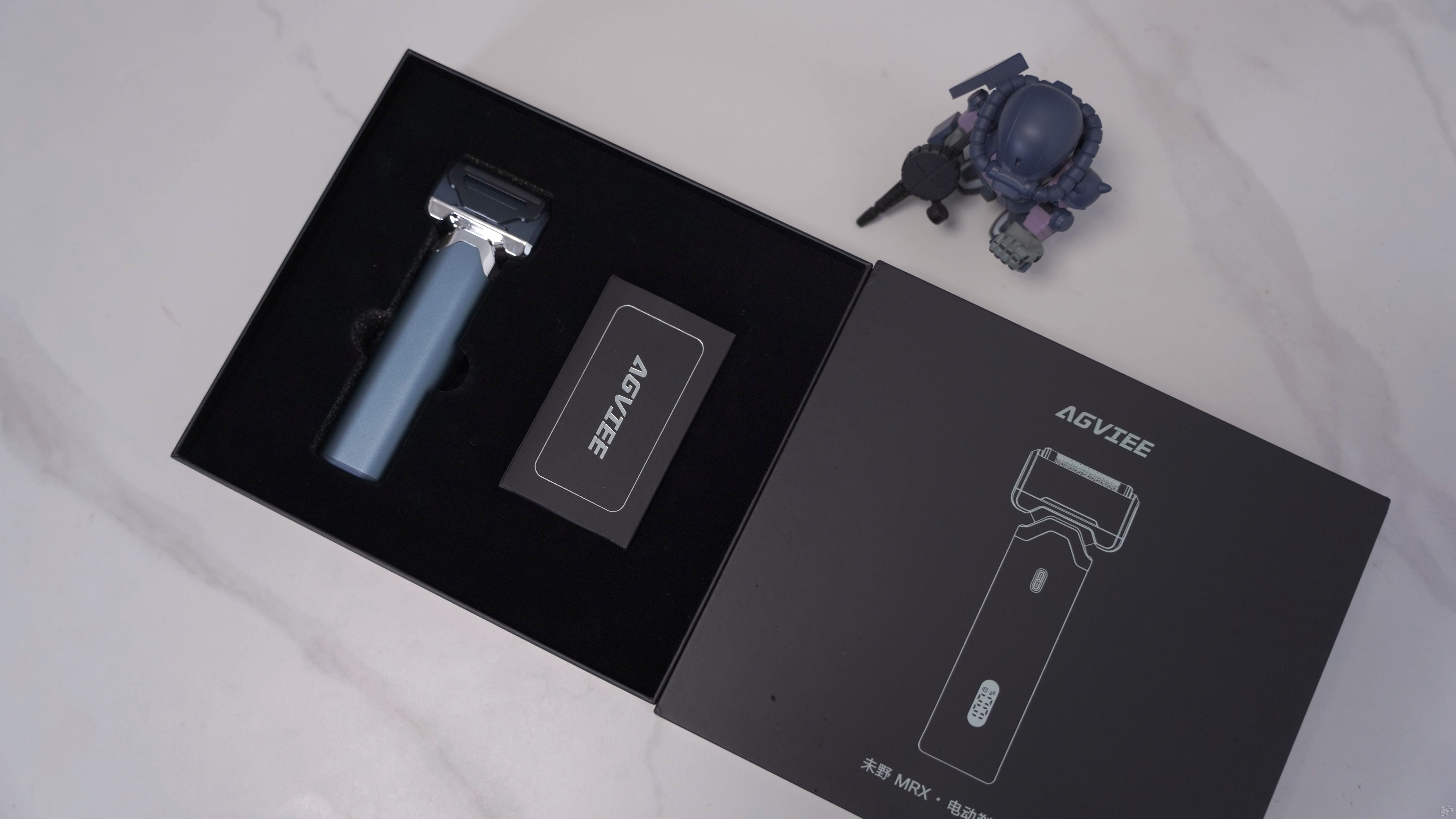 未野MRX電動剃須刀的外包裝為深邃黑色簡約包裝,看著質(zhì)感不錯,不論是送隊友還是送長輩,都是拿得出手的。