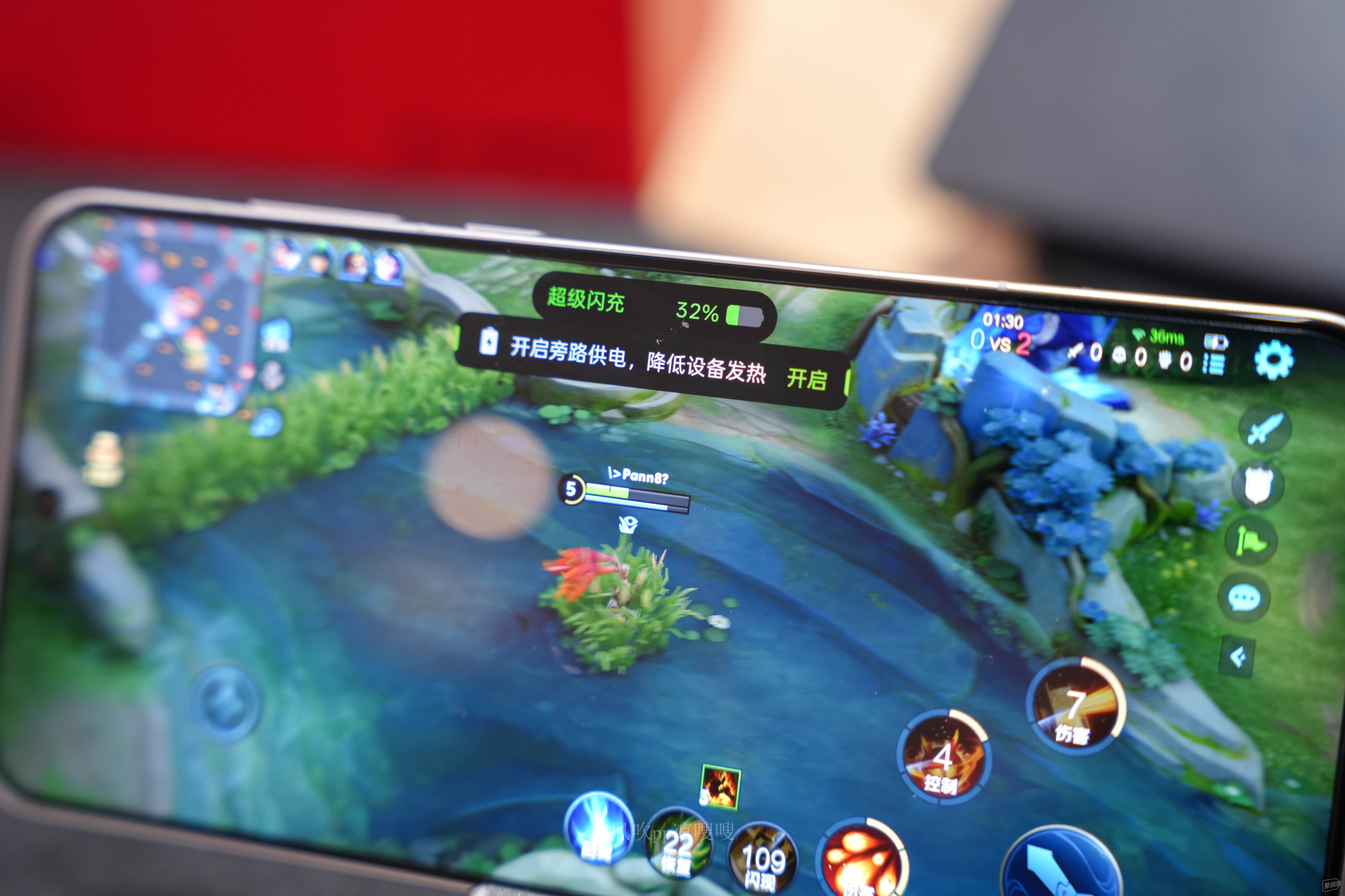 這機子還藏著個物理外掛——旁路供電,插上充電器打游戲,電流可以直接繞過電池給主板供電,再也不用擔心邊充電邊打王者會發熱卡頓,并且它還有局間補電功能,系統會在對局間隙時快速充電,邊玩游戲也能回血。