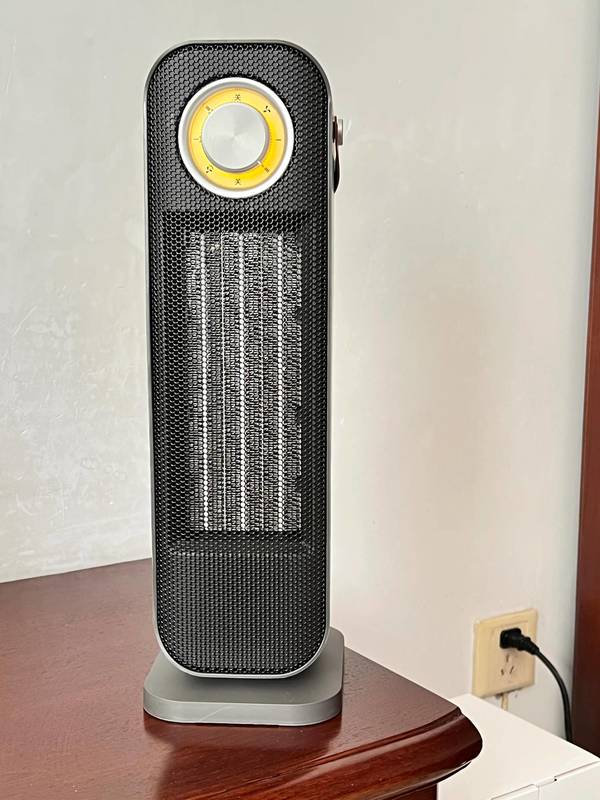 機身外觀設計高端時尚很有質感,深灰色的機體外殼搭配了耐高溫的金屬網罩以及流線型底座,簡約又大氣;還有那皮質提手和金屬色的6擋位調節旋鈕,無論放在客廳角落、臥室床邊或者辦公桌旁,都像一件小巧的藝術品,與多種家居都能完美適配。