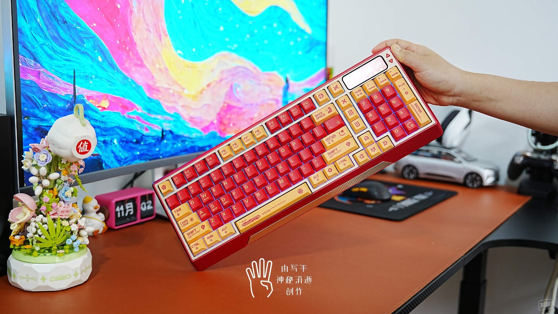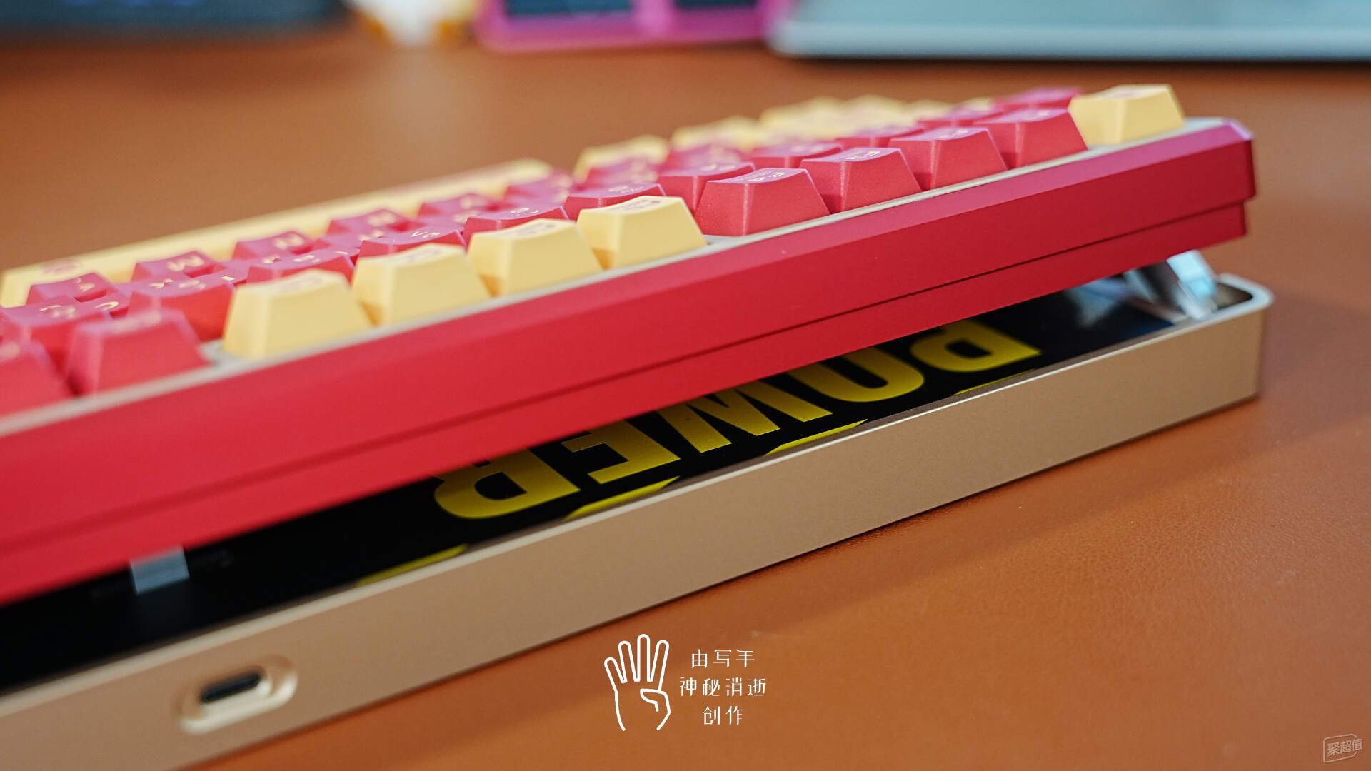 ▲我選購(gòu)的是熱烈耀目的金紅鋼鐵俠配色+奶芋軸,前者外觀既有顏值張力又不會(huì)過(guò)分花俏;后者和原廠高度、PBT五面熱升華鍵帽搭配,手感更傾向于干凈清爽的feeling。