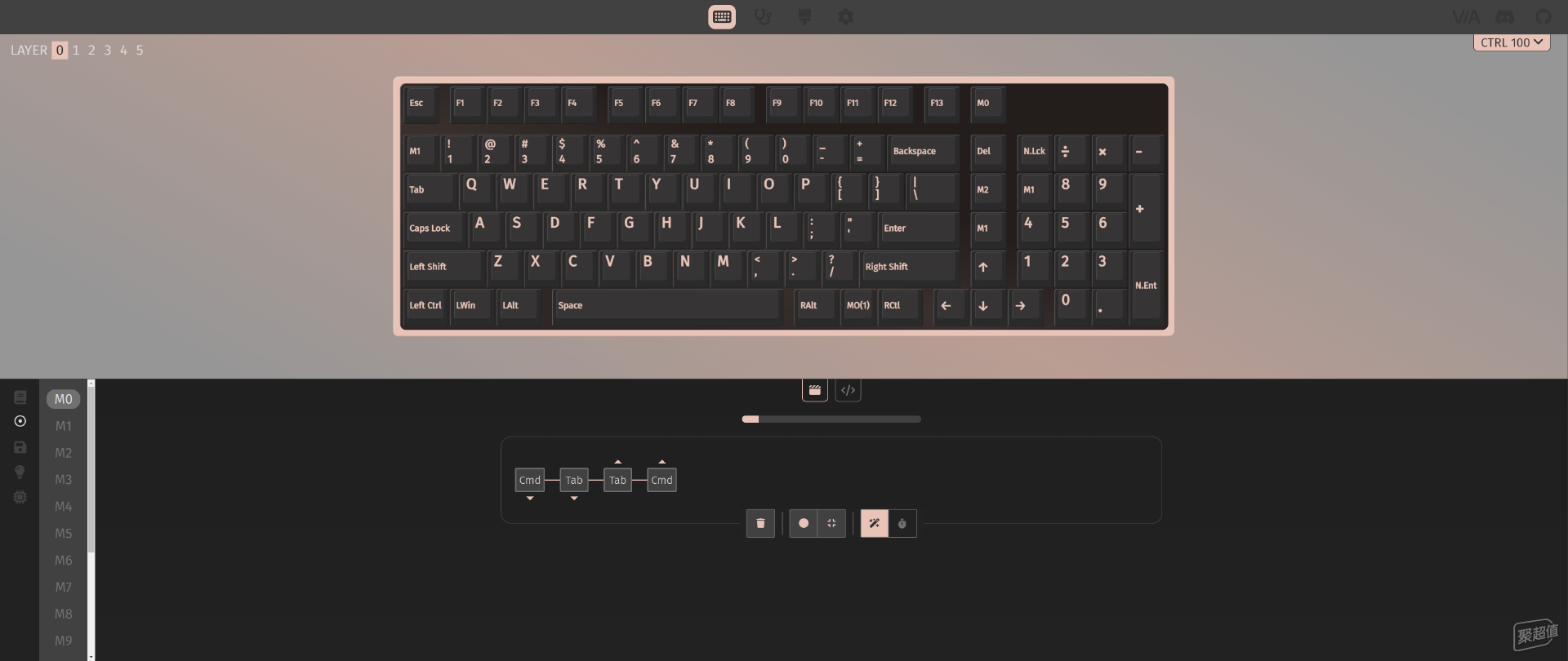 ▲我最喜歡的莫過(guò)于鍵盤支持QMK/VIA開源改鍵功能,登錄caniusevia網(wǎng)頁(yè)就能編輯保存,也能通過(guò)GitHub下載軟件進(jìn)行,不管是更改單個(gè)按鍵功能,還是宏命令組合,所有客制化設(shè)定都能輕松實(shí)現(xiàn)。