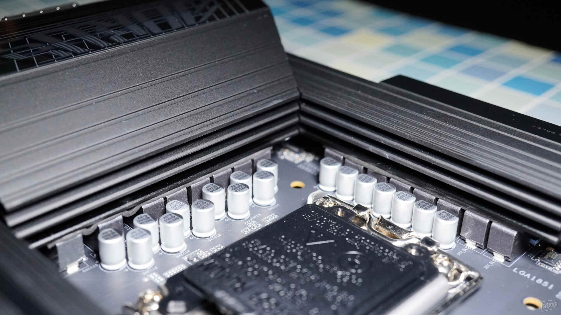 主板能拉到多高的CPU,核心主要看供電部分的規格,以及散熱。這塊板子使用了12+1+2相供電,散熱規格更是頂級,四處都是全覆蓋的散熱裝甲。再加上8層的服務器級PCB,整張主板份量相當足。