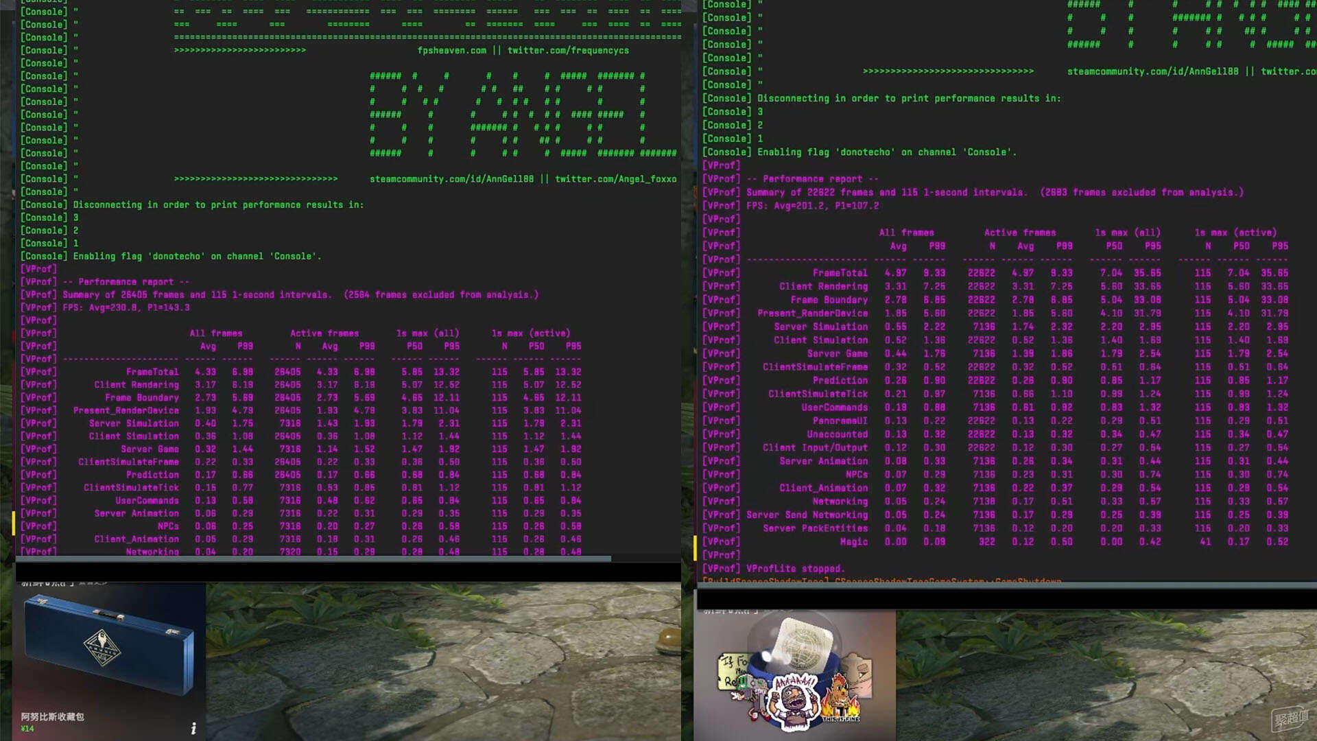 在其他配置和設置完全一樣的情況下,內存性能的提升對游戲表現都會有一定的助力,對一些網游更為明顯。跑一下CS2創意工坊的Benchmark,超頻前的平均幀率為201.2幀,1%Low幀107.2幀,開啟黑科技后提升到了230.8的平均幀率,和143.3的1%Low幀。