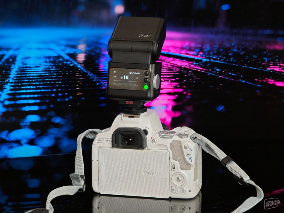神牛iT32的體積非常小巧,隨身攜帶相當方便。采用非常經典的純黑色外觀設計,無論什么款式、什么顏色的相機都可以輕松搭配。