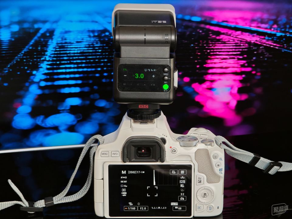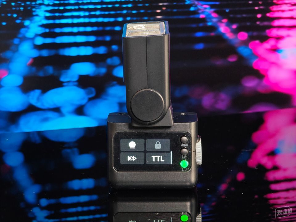 磁吸連接后就可以直接使用,不需要再進行任何配對操作。神牛iT32搭載了一塊全彩支持中文菜單的觸摸屏,閃光燈既可以用傳統的按鍵、旋鈕進行操控,也可以使用觸摸屏進行操控,個人更喜歡直觀的觸屏操作。